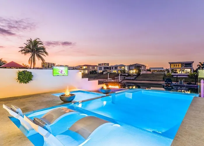 Resort Style Luxurious Waterfront Entertainer Gold Coast villa is located a 25-minute walk from the Gold Coast Convention and Exhibition Centre and provides a private swimming pool, ensuring a relaxing stay. Offering a free private car park as well as Wi-Fi, this holiday home is situated in the Mermaid Waters district.